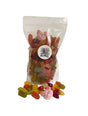 Ingrediënten: Glucosestroop, suiker, water, gelatine, gemodificeerd zetmeel (maïs, aardappel, tarwe, tapioca, erwt), voedingszuren (E260, E270, E296, E297, E330, E350, E331), aroma's, zoethoutwortelextract, salmiakzout, dextrose, glucose-fructosestroop, fructo-oligosacchariden, gehydrolyseerd erwteneiwit, glansmiddel (E901, E903, E904), kokosolie, raapzaadolie, stabilisatoren (E414, E420), kleurend levensmiddel (concentraten van: saffloer, spirulina, appel, radijs, zwarte bes, bosbes, wortel, zwarte wortel, citroen), vruchtensap concentraat (appel, zwarte bes, kersen, framboos, aardbei, sinaasappel, abrikoos, ananas, passievrucht, citroen, grapefruit, banaan, perzik, druif, peer), kleurstoffen (E100, E102, E110, E120, E129, E131, E132, E133, E141, E150a, E150d, E153, E160a, E160c, E162, E163).